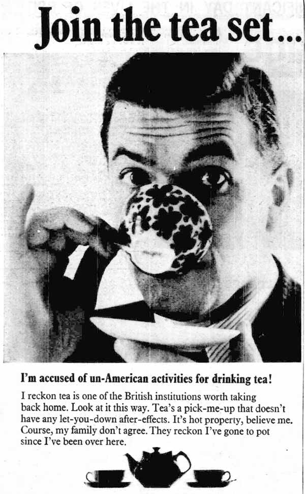 Remembered, here are a collection of the Tea Council tea drinking television commercials, a campaign that was screened nationwide Autumn 1965 through to the next year, and their press advertisements promoting the drinking of tea which took place during the same period. The primary slogan used in the campaign was "Join the Tea Set". Obviously aimed to also appeal to the untapped youth market of consumers.
